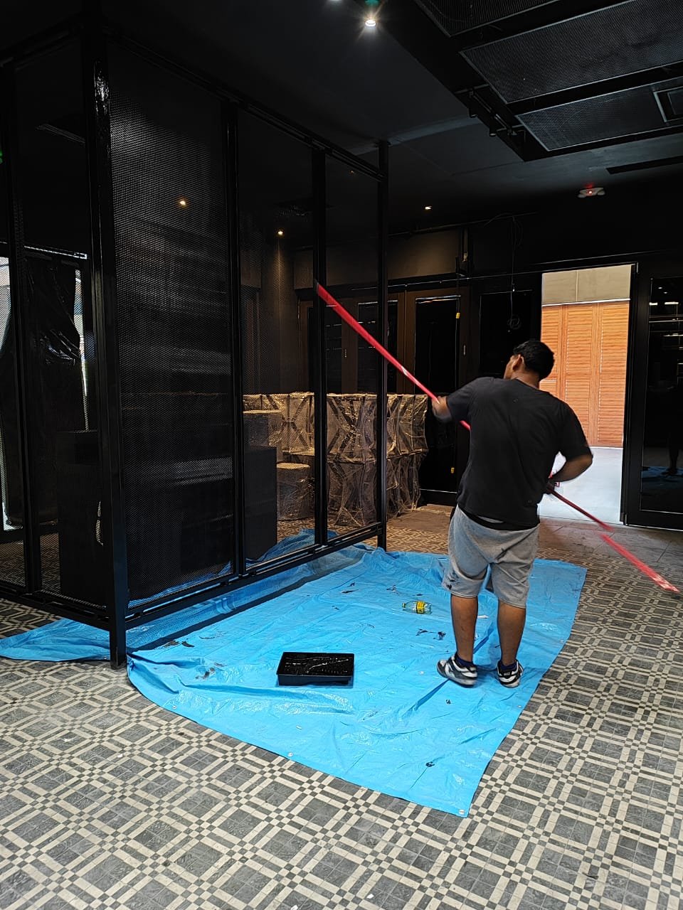 Aplicación de pinturas industriales y técnicas de sandblast para protección y acabado de superficies.